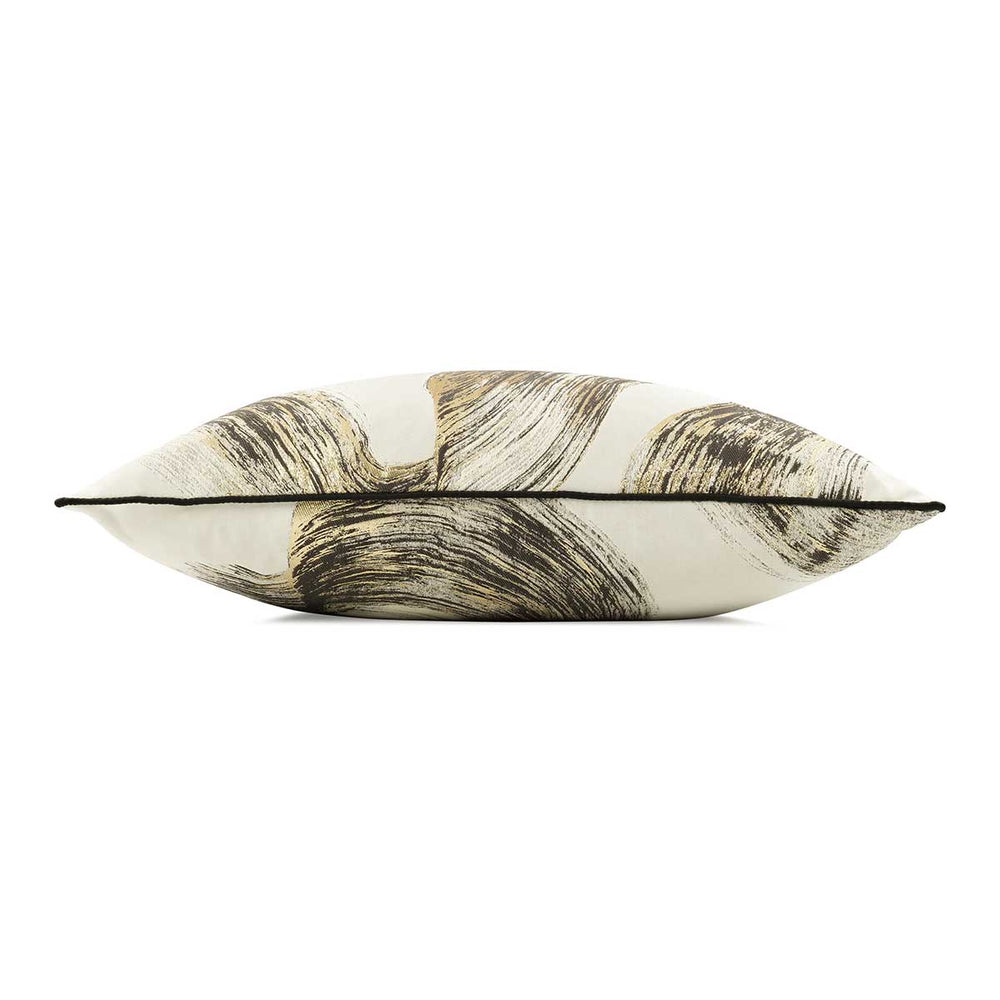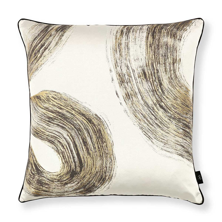 Indulge in the epitome of luxury, as textural, metallic brushstrokes dance across a beautifully soft, satin cushion.