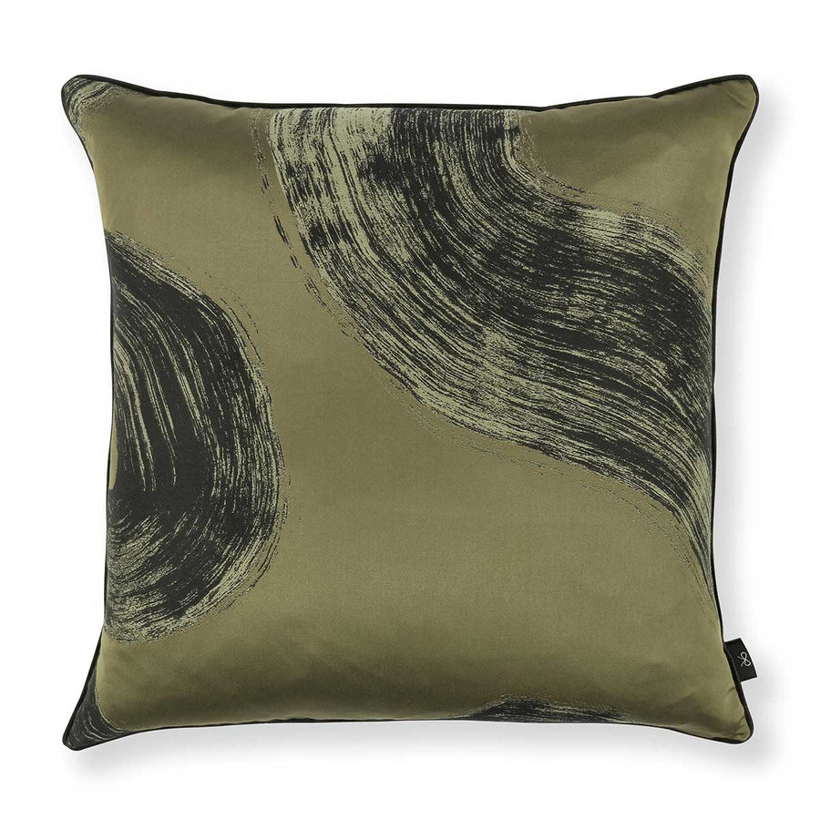 Indulge in the epitome of luxury, as bold, textural brushstrokes dance across a beautifully soft, satin cushion.
