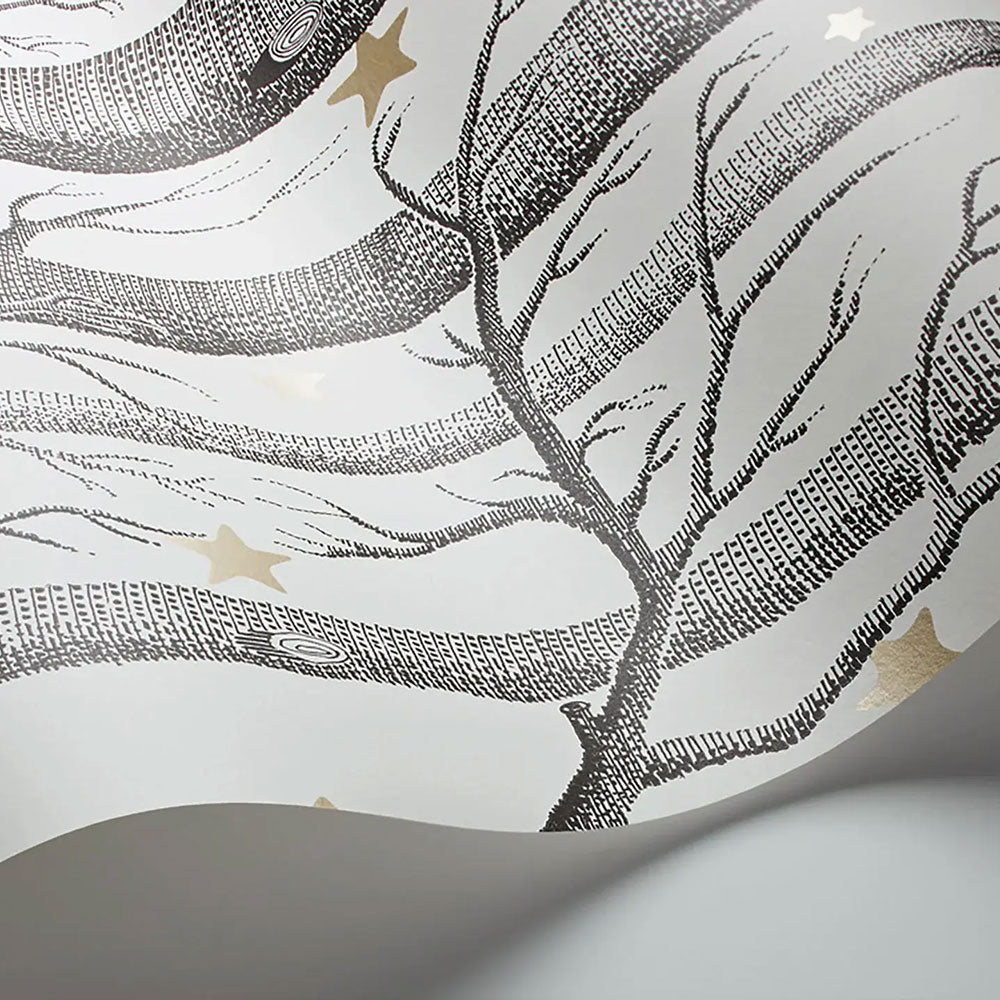 By combining the Cole & Son classic, Woods, with a magical addition our Design House artists have produced the charming and enigmatic Woods & Stars tree wallpaper. Printed in colour moods ranging from cool neutrals and metallics through to midnight blue and inky black, Woods & Stars ushers you into a fairytale woodland.