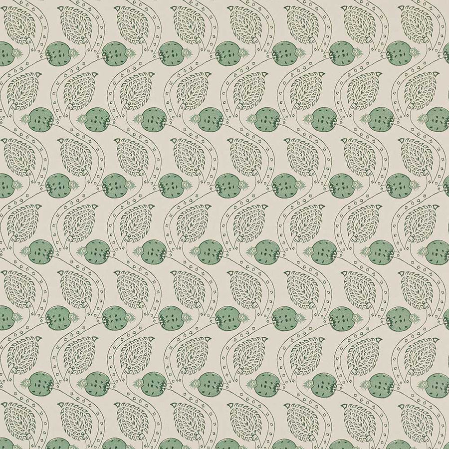 Ashmead has a charming appeal and features imagery from a stylised fruit tree motif. It has an even all over repeat that gives it a slightly ‘Arts and Crafts’ feel. Ashmead is also available as a hand block printed fabric.