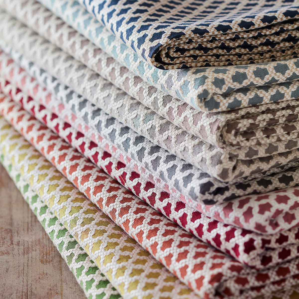 A small scale jacquard weave with a striking pattern imitating a specific diamond cut. This dual purpose fabric is ideally suited for upholstery but can also be used for drapery and soft furnishings. Featuring a subtle textural stitch, this versatile smart design is the perfect colour carrier and is available in ten soft colours which will sit comfortably in any style of interior scheme.