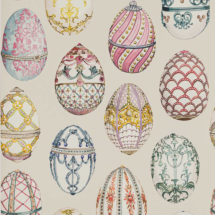 This jewel-like print of meticulously hand painted eggs is inspired by the notorious creations of Fabergé. Hand rendered in watercolour these opulent objects display captivating details and ornamentation.