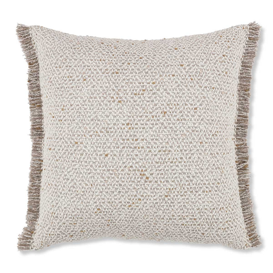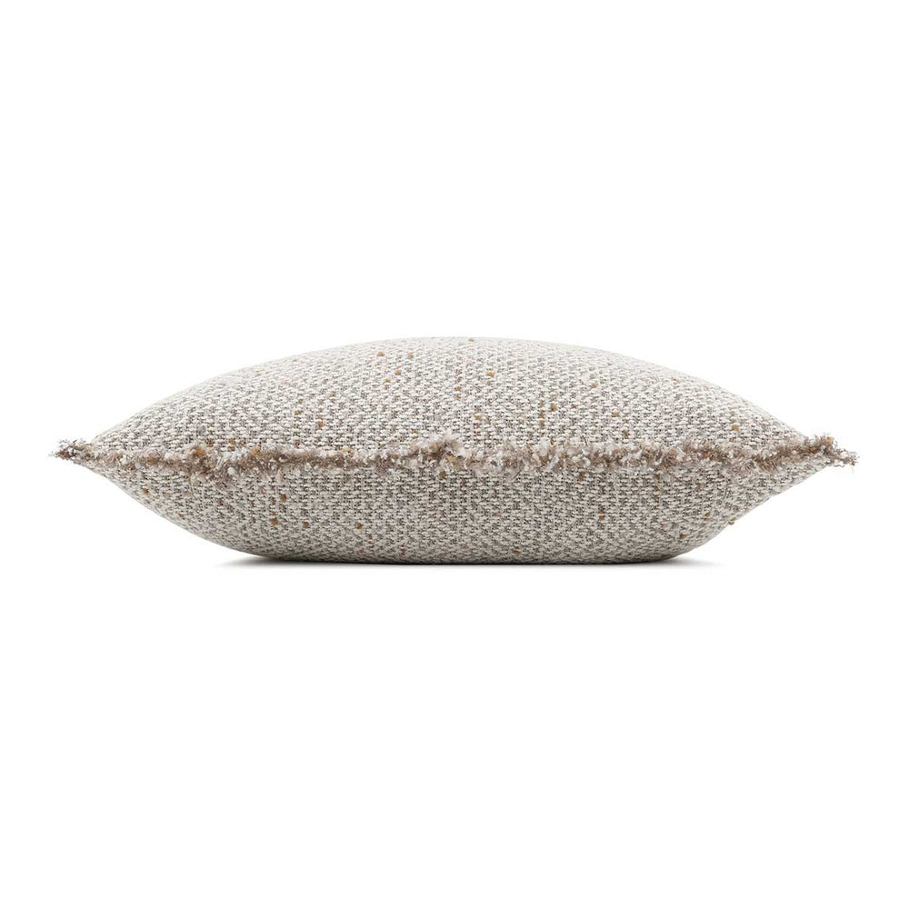 An exquisite, chunky fabric woven from a playful melange of sumptuous bouclé, luxurious chenille and soft fancy yarns. Beautiful details with considered pops of colour dance across the cushion and a tactile frayed edge adds yet more character.