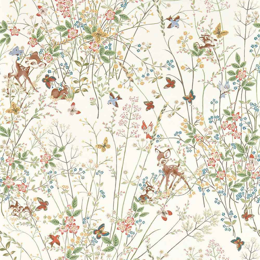 A host of woodland friends join Disney`s Bambi in this charming springtime scene of archival Sanderson florals. Created especially for the Disney Home x Sanderson collection and hand painted in gouache, four beautiful colourways share a whimsical, quintessentially English feel.