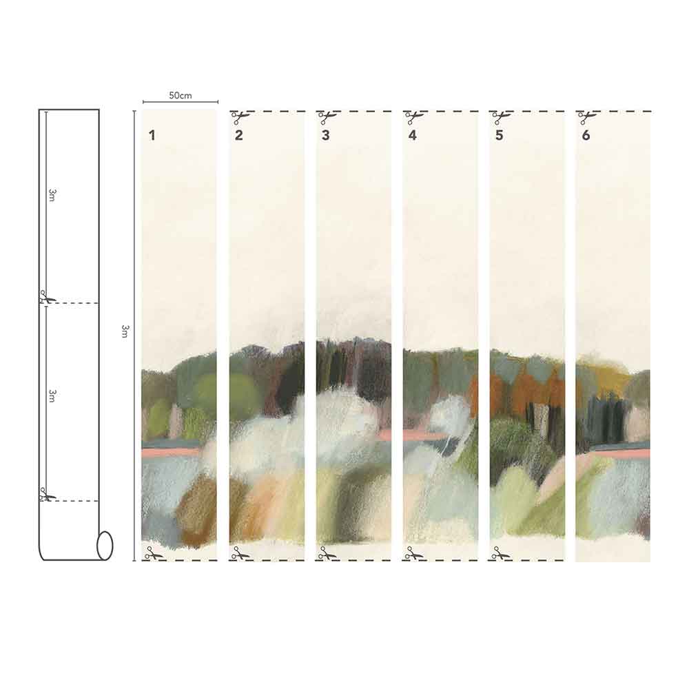 A showstopping wall mural inspired by a pastel drawing by ceramic artist Kyra Cane of a field on the Welbeck country estate. The original drawing has been enlarged greatly in scale to become an impactful and dramatic mural. The mural depicts a landscape as it unfolds revealing woodland and fields. The Welbeck Wall Mural cleverly maintains the charm of the original sketch with loose pastel strokes that are layered to create blends of colour and texture. This statement design is an artistic masterpiece for walls.