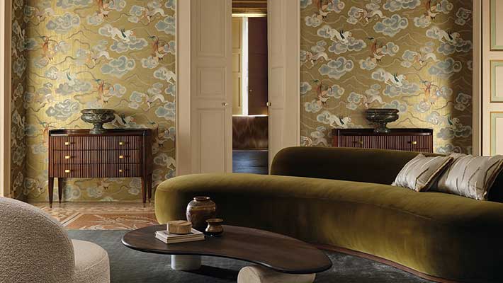 Pushing boundaries through texture, scale and finish, Black Edition wallpapers are crafted to elevate interior spaces. Embroidery-inspired effects, dramatic contrasts and rich colour palettes define the brand’s distinctive style.
