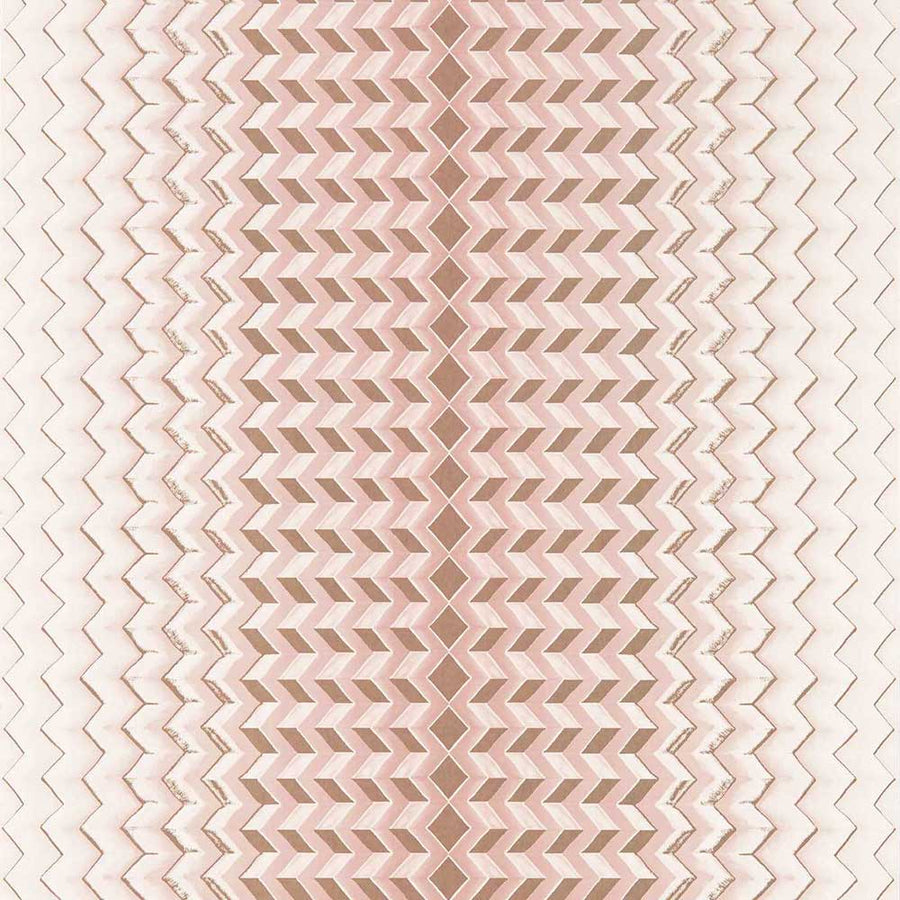 Fragment shows an angular geometric chevron stripe featuring a linear metallic. Gravure printed on 150g non-woven.