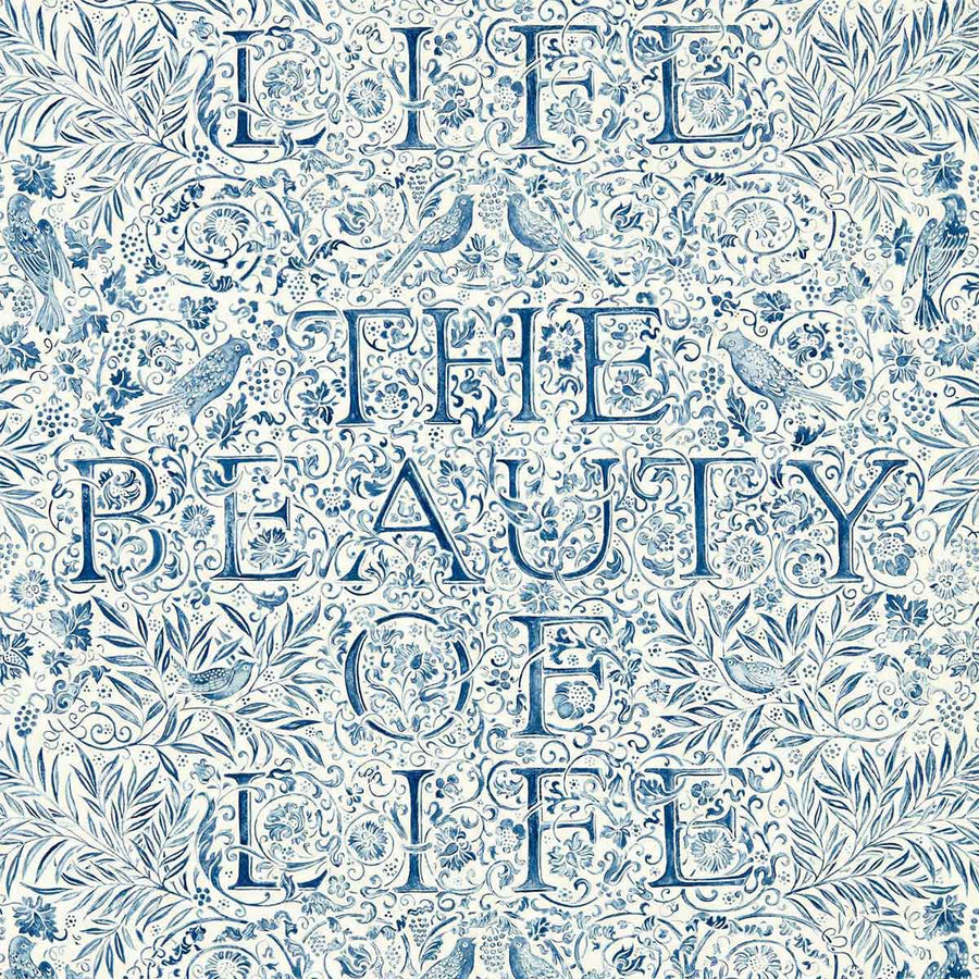 Introducing a brand-new design from Morris & Co. Delivered to the Birmingham Society of Arts on February 19th 1880, The Beauty of Life is the lecture title of William Morris`s passionate appeal against the ill effects of industrialised capitalism. This rallying cry is forever immortalised on a high-drama wallpaper, ornamented with quintessentially Morris motifs; scrolling foliage, chattering birds and beautiful script inspired by his own Kelmscott Press.