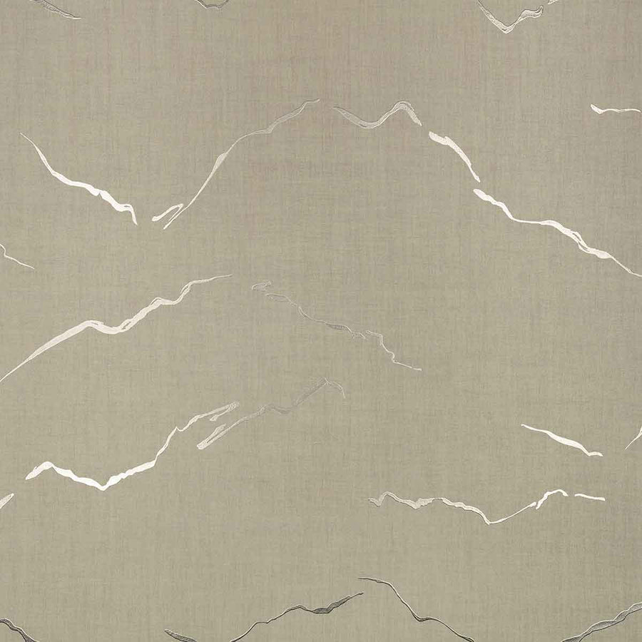 Fluid metallic lines gracefully capture the essence of simplicity, drawing inspiration from a majestic landscape that exudes a profound sense of calm and tranquillity. Printed on a ground that mimics the appearance of fine silk, this design is created using an innovative foam for depth and overlayed with a metallic foil for a touch of lustre.