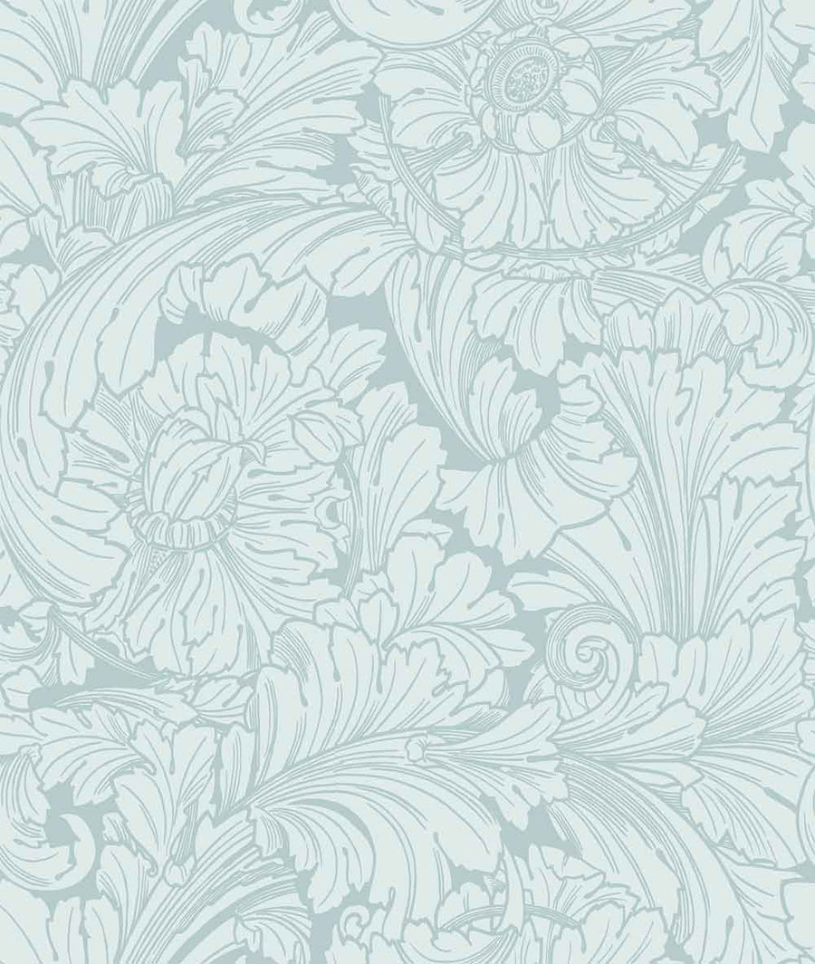 The graphic linework of Acanthus’ stylised filigree-like flowers and foliage makes this archival Arts and Crafts design feel at once classic and contemporary. The perennial’s large leaves give an opulence to this vegetal print with its stately colour palettes of soft Pebble grey and Print Room Blue, alongside earthy Forest greens, and striking monochromatic Soot, Snow, and rouge.