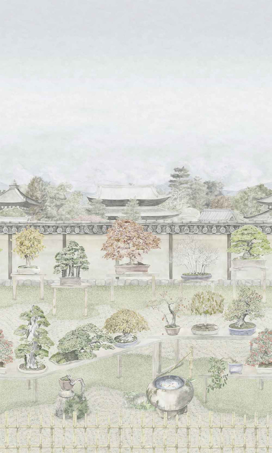 The Kyoto Bonsai Garden has been the key inspiration for this chinoiserie design. The curation of Bonsai Garden showcases a selection of prominent bonsai trees – each hand-picked tree carries a story of their own that mirrors the craft of bonsai masters. Welcome the art of bonsai to your home with the cultivated ornamental tree that symbolise ‘peace, balance, harmony, and luck’. The balanced colour palette within the chinoiserie design invites you to explore the dramatic skyline of Kyoto. Slowly walk from tree to tree and discover bonsais with a heritage of 350 years. The design composition of Bonsai Garden allows for each tree to have its own area to shine for centuries..