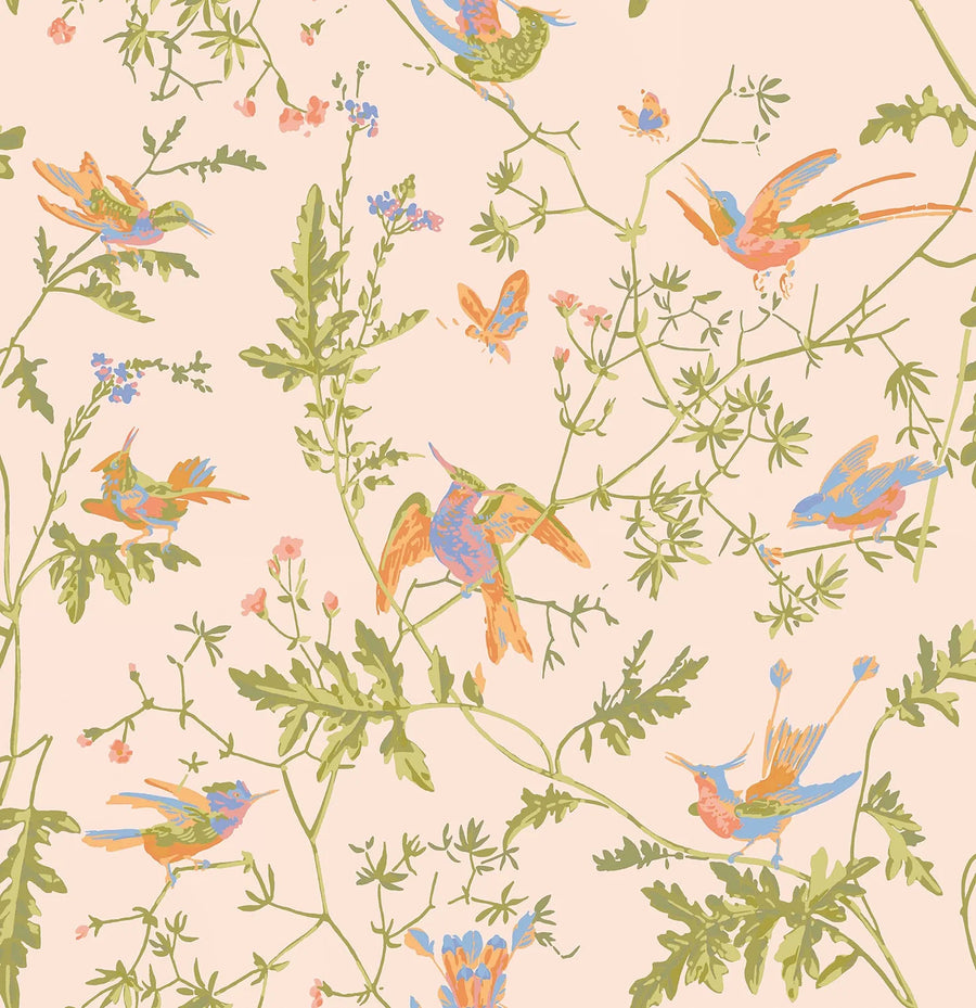 Hummingbirds Tangerine & Olive on Blush Wallpaper