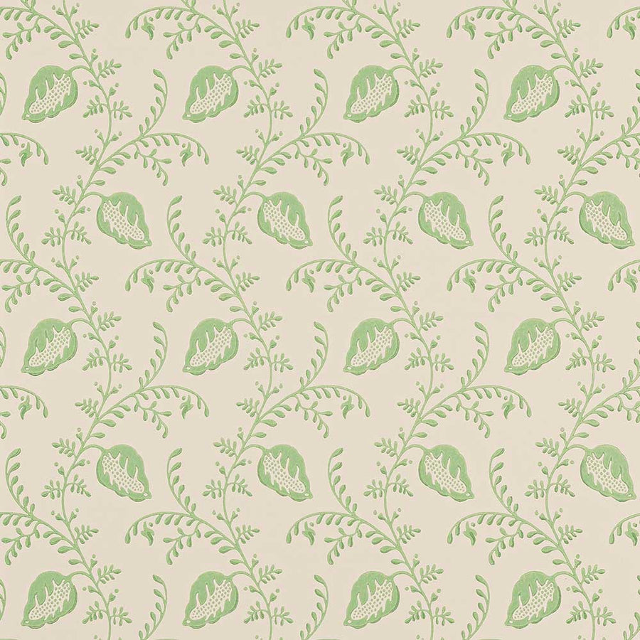 A charmingly whimsical trailing wallpaper featuring stylised foliage and seedpods, it is linked to the block printed fabric design of the same name. The character of Felicity is enhanced by the choice of surface printing which creates the appealing raised textures, evocative of the block printing. Alternative moods are created by the colouring differences in Felicity, which features three opaque white colour ways on chalky, pastel grounds and three lively colour-on-cream versions.