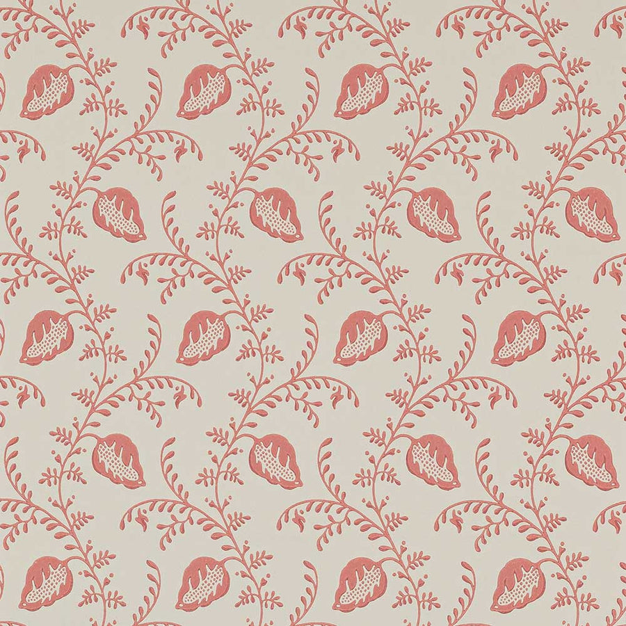 A charmingly whimsical trailing wallpaper featuring stylised foliage and seedpods, it is linked to the block printed fabric design of the same name. The character of Felicity is enhanced by the choice of surface printing which creates the appealing raised textures, evocative of the block printing. Alternative moods are created by the colouring differences in Felicity, which features three opaque white colour ways on chalky, pastel grounds and three lively colour-on-cream versions.