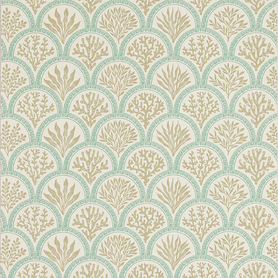 Surface printed to capture the look of a block print, coral motifs are printed within a decorative scallop design in this joyous, distinctive paper. Coloured in bright zappy shades, it is complemented by a printed fabric of the same name.