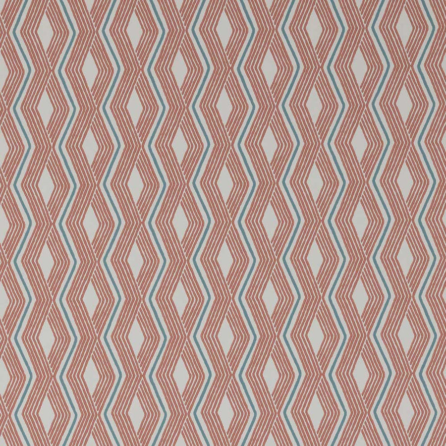 This diamond fretwork pattern brings a contemporary edge to the collection with its textured line work and contrasting colour detail. Surface printed on cream grounds.
