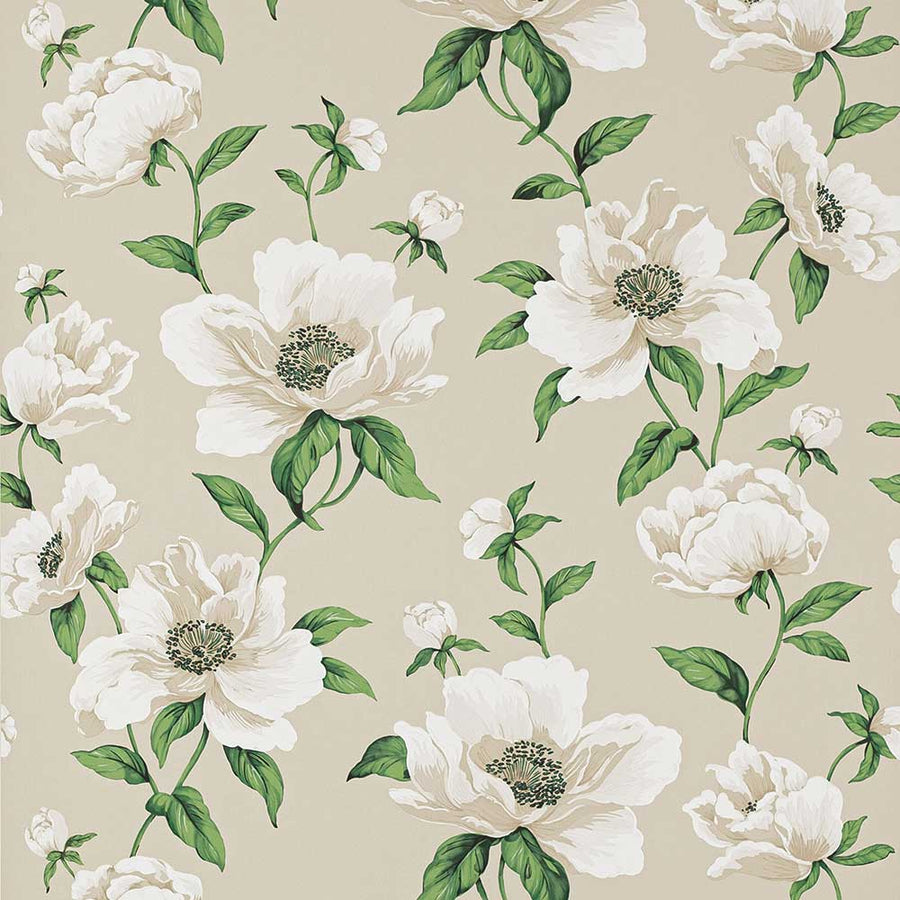 Bianca depicts fresh blooming anemones dancing gracefully across the design. A white pigment is applied to highlight the soft edges of the flowers offering a true hand-painted aesthetic and a radiant feel.