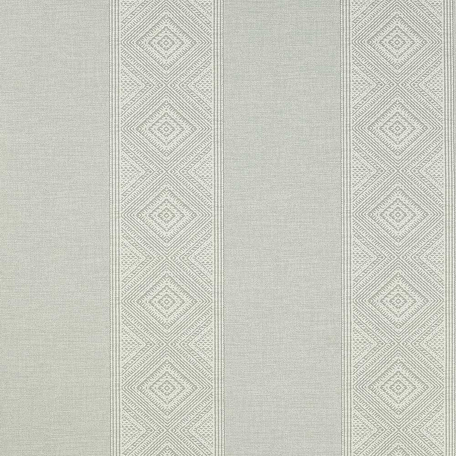 A wallpaper interpretation of the fabric Taya, imitating its texture. This two-tone wallpaper alternates textured stripes with stripes of geometric detailing.