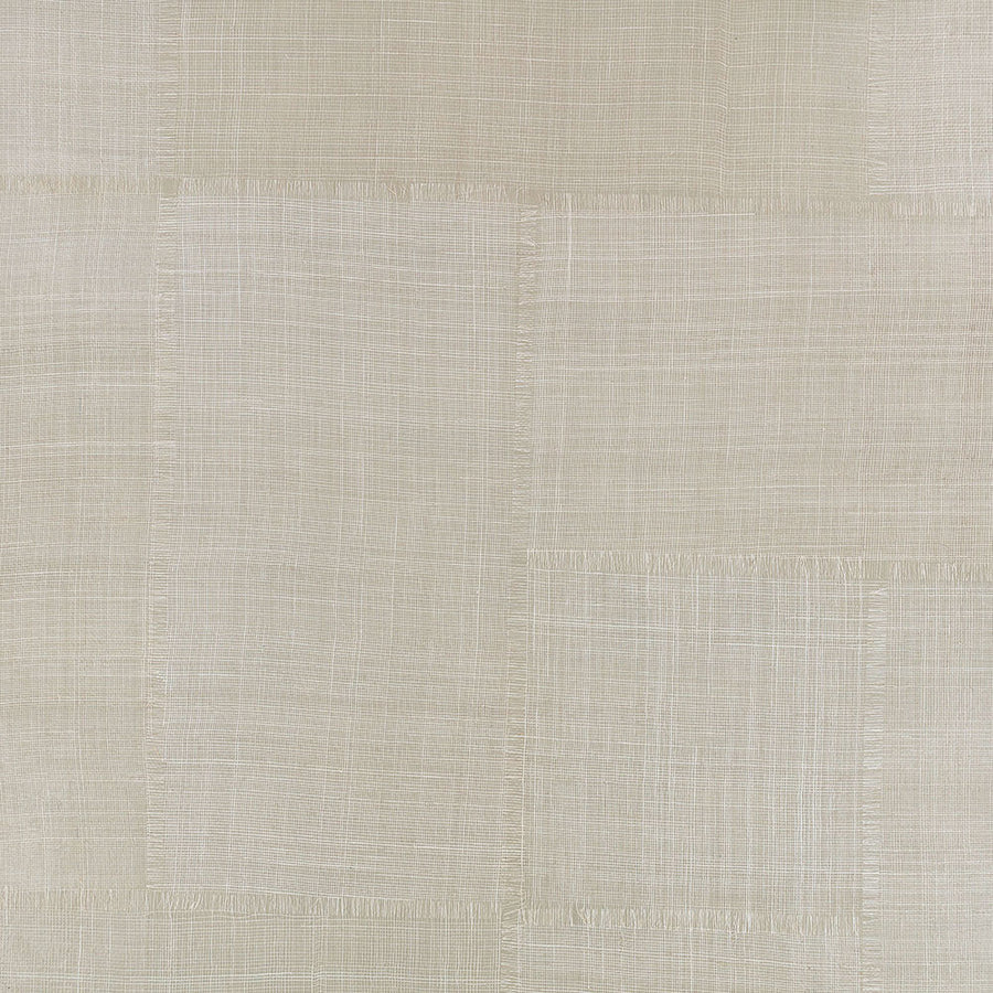 Various shapes of woven strands of abac√° are mounted, slightly overlapping, onto coloured paper to create a subtle patchwork design.