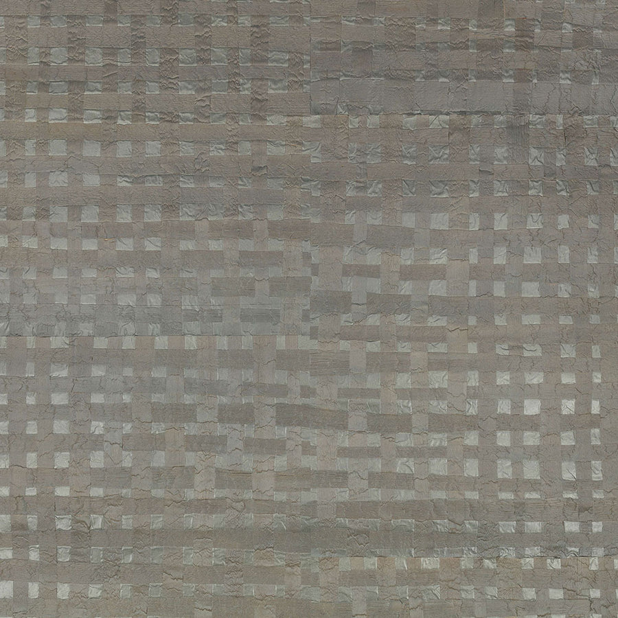 A lattice of handwoven water hyacinth has been mounted onto paper with a subtle sheen, creating a design of balanced contrast.