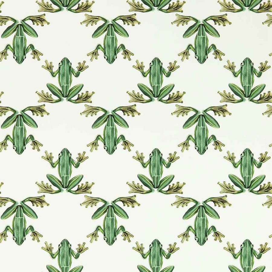 This playful wallpaper features a diamond pattern of whimsical frogs sitting in a trellis formation and pairing perfectly with the entire Harlequin Colour 4 collection. The Gold/Parchment colourway has lux metallic highlights that contrast against its flat ivory ground.