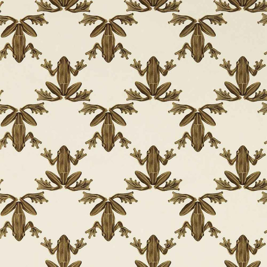 This playful wallpaper features a diamond pattern of whimsical frogs sitting in a trellis formation and pairing perfectly with the entire Harlequin Colour 4 collection. The Gold/Parchment colourway has lux metallic highlights that contrast against its flat ivory ground.