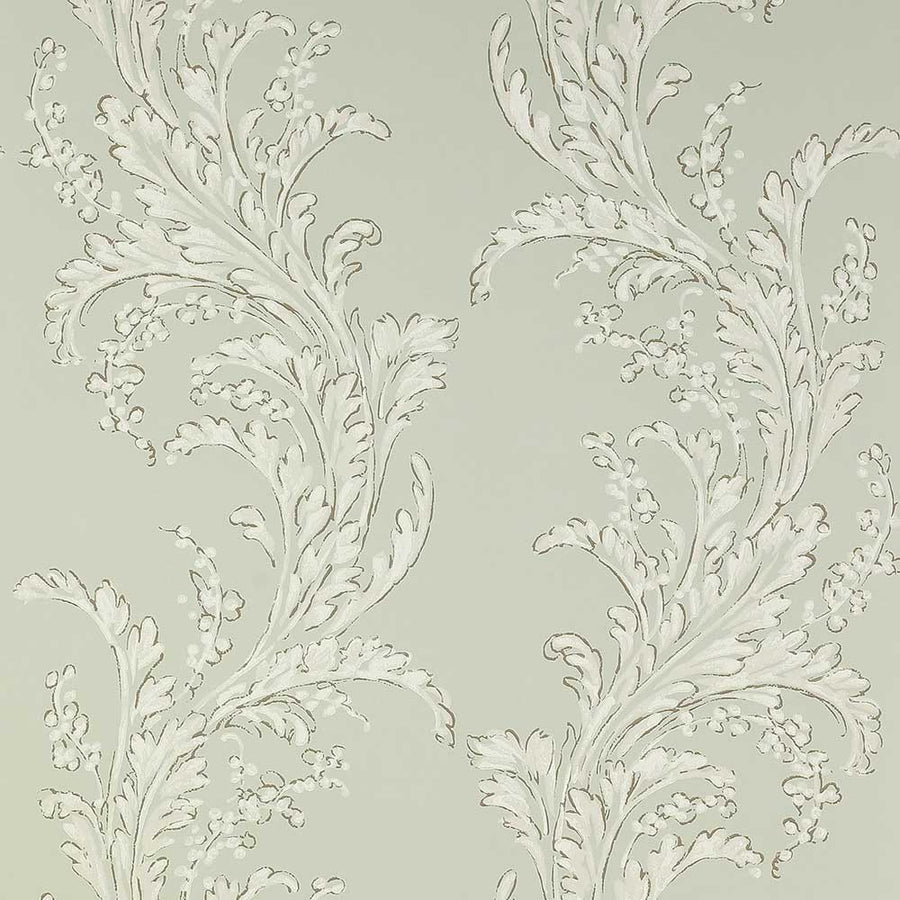 Signature design of the Manuel Canovas fabric house, elegant arabesques of acanthus leaves climb skywards bathed in subtle accents of light.