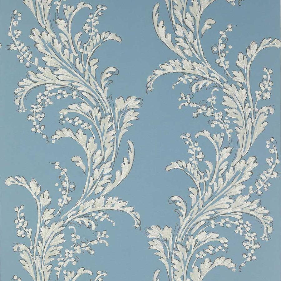 Signature design of the Manuel Canovas fabric house, elegant arabesques of acanthus leaves climb skywards bathed in subtle accents of light.